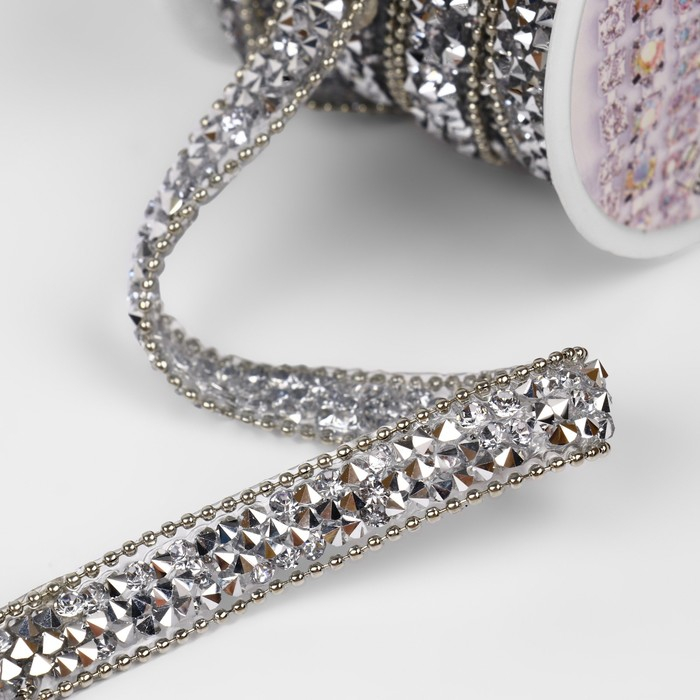 Стразы термоклеевые «Ромбы», ширина - 13 мм, 4,5 ± 0,5 м, цвет серебряный