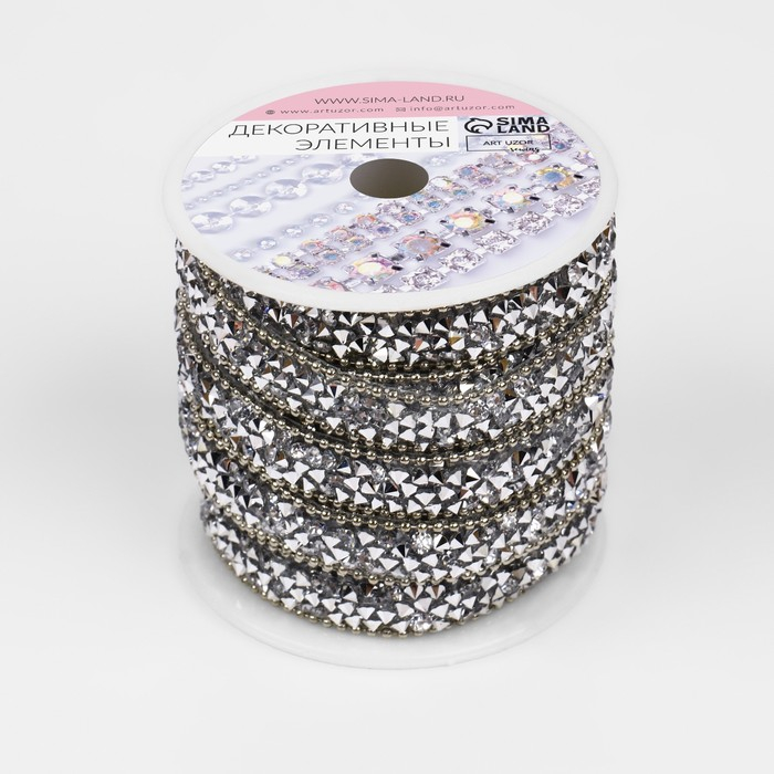 Стразы и бусины термоклеевые, ширина - 10 мм, 4,5 ± 0,5 м, цвет серебряный