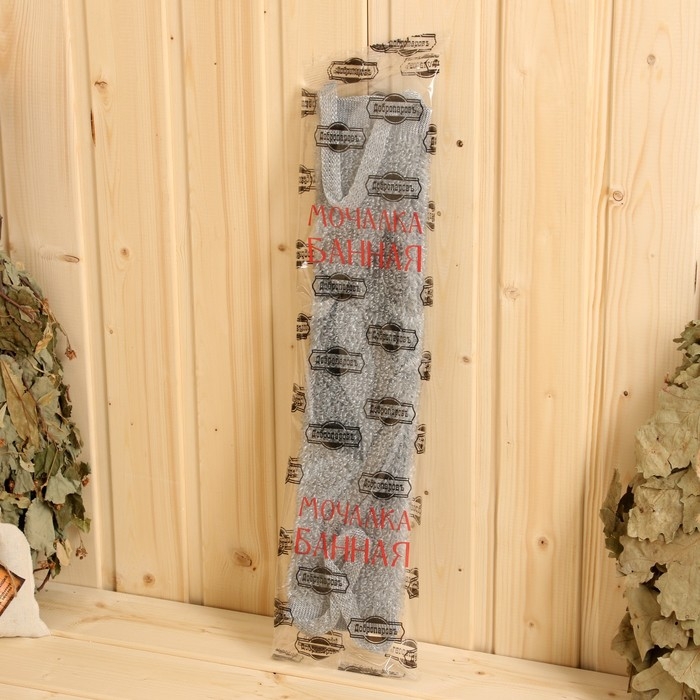 Мочалка банная с ручками "Пояс" серая (45 см без ручек) Добропаровъ