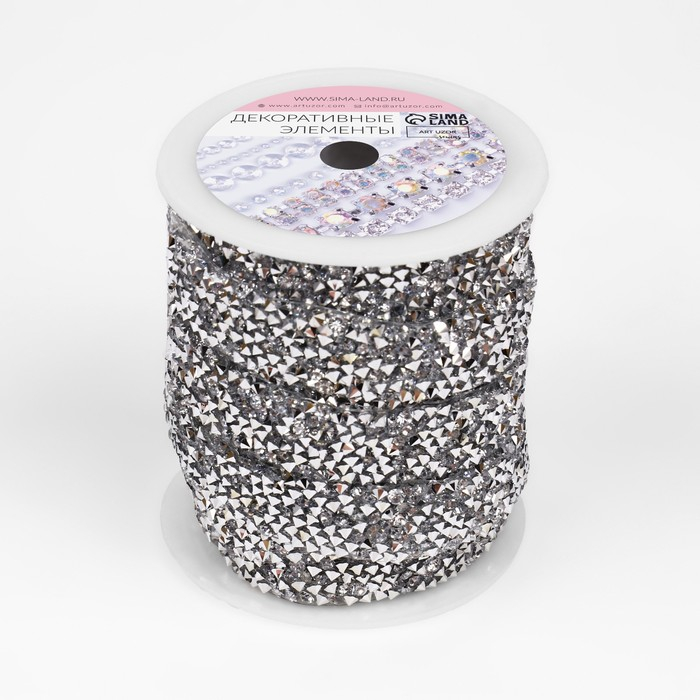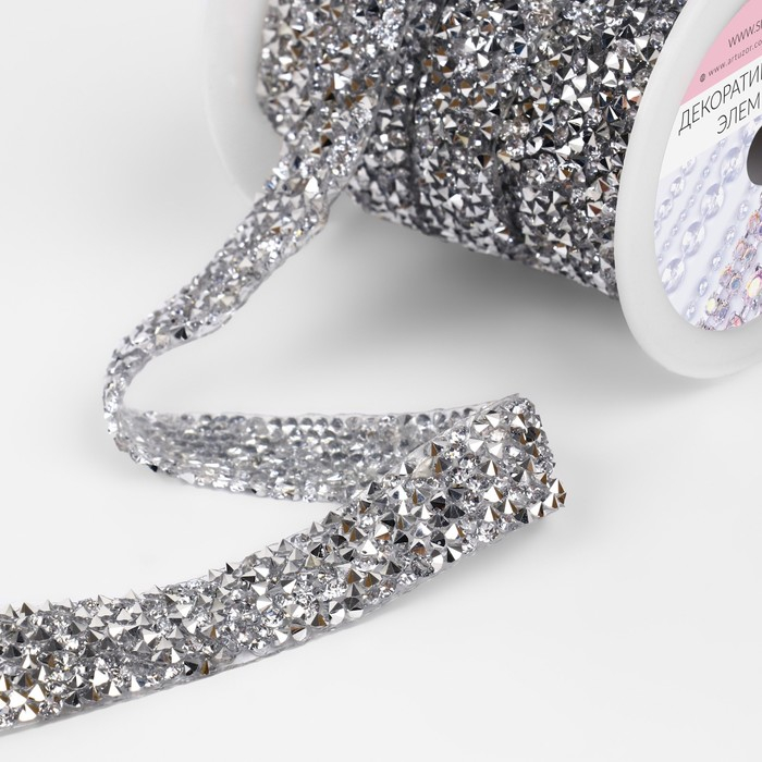 Стразы термоклеевые, ширина - 15 мм, 4,5 ± 0,5 м, цвет серебряный