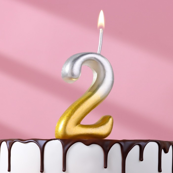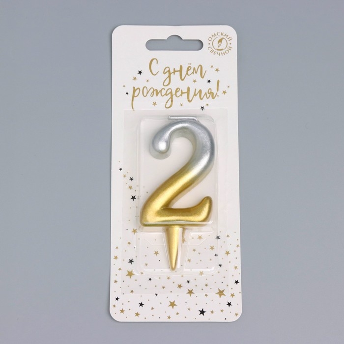 Свеча для торта цифра "Овал" "2", 5,5 см, золото-серебро