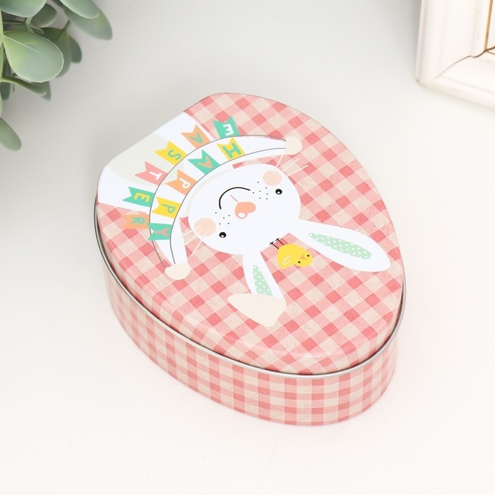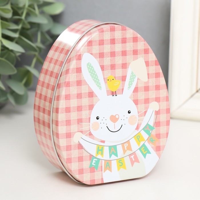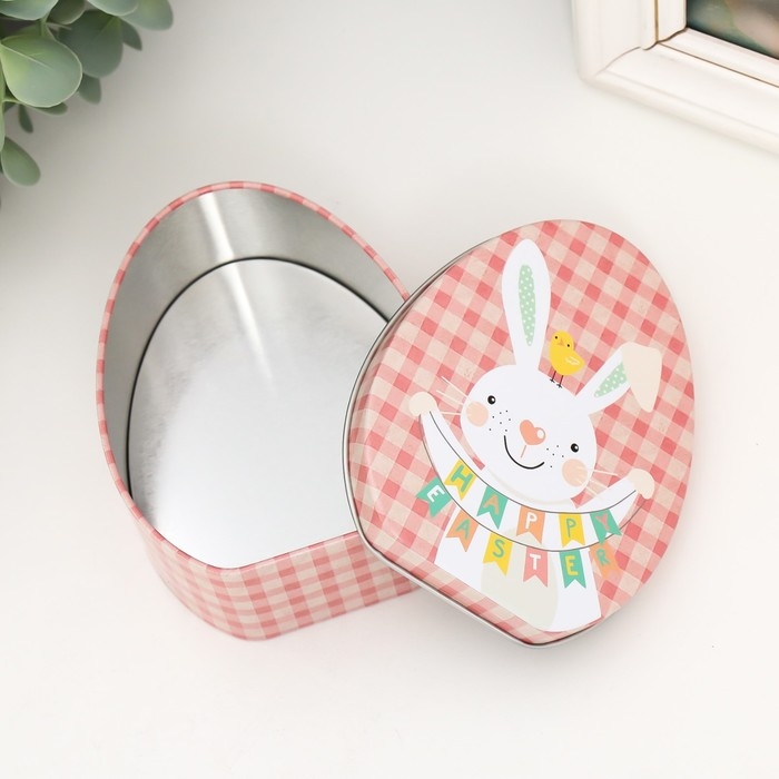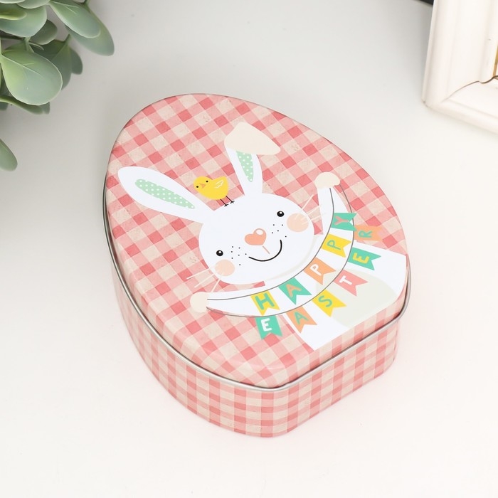 Шкатулка металл яйцо "Зайчик с растяжкой Счастливой Пасхи" 11,7х9,2х4,5 см