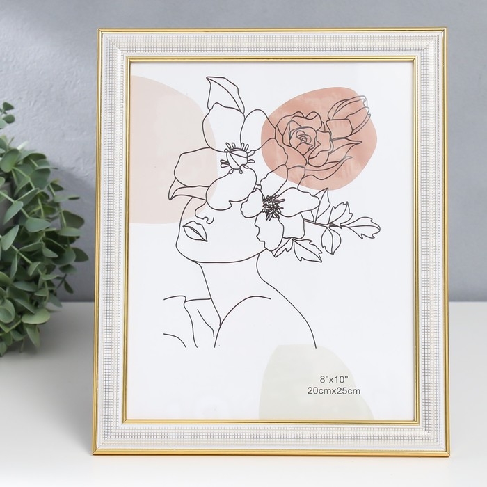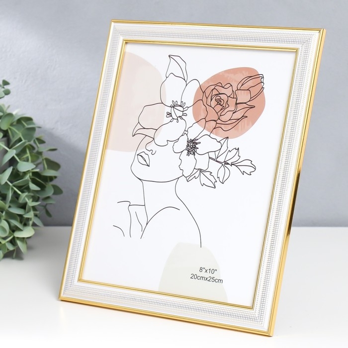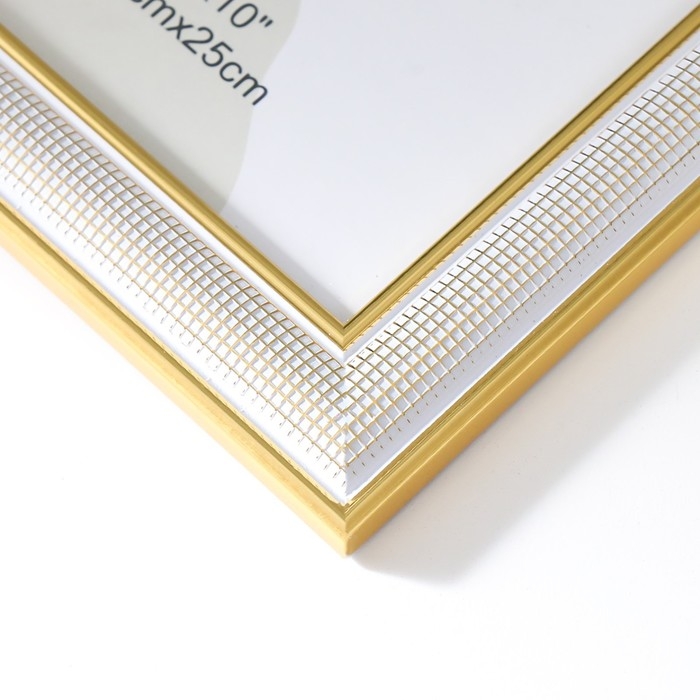 Фоторамка пластик 20х25 см "Мелкая сетка" белая с двойной золотой обводкой 28,5х23,5 см