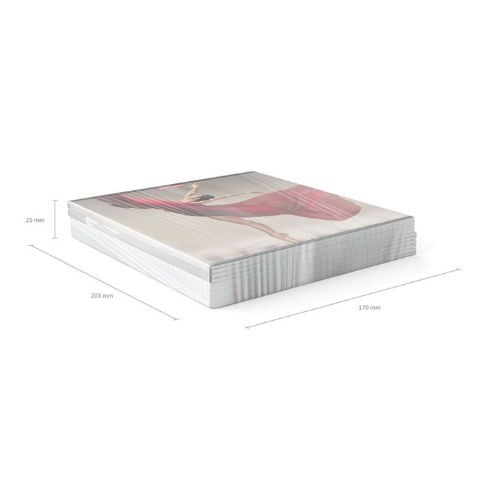Тетрадь общая формата А5+ (170х203 мм). Обложка из высококачественного мелованного картона плотностью 190 г/м2. Отделка - матовая ламинация. В блоке 48 листов в клетку с полями. Бумага офсетная плотностью 60 г/м2. Цвет линовки - синий. Скругленные уголки обложки и блока. Тип скрепления - скоба. Тетради одного цвета упакованы в термоусадочную пленку по 5 штук. Товар поставляется в нескольких вариантах цвета без возможности выбора.