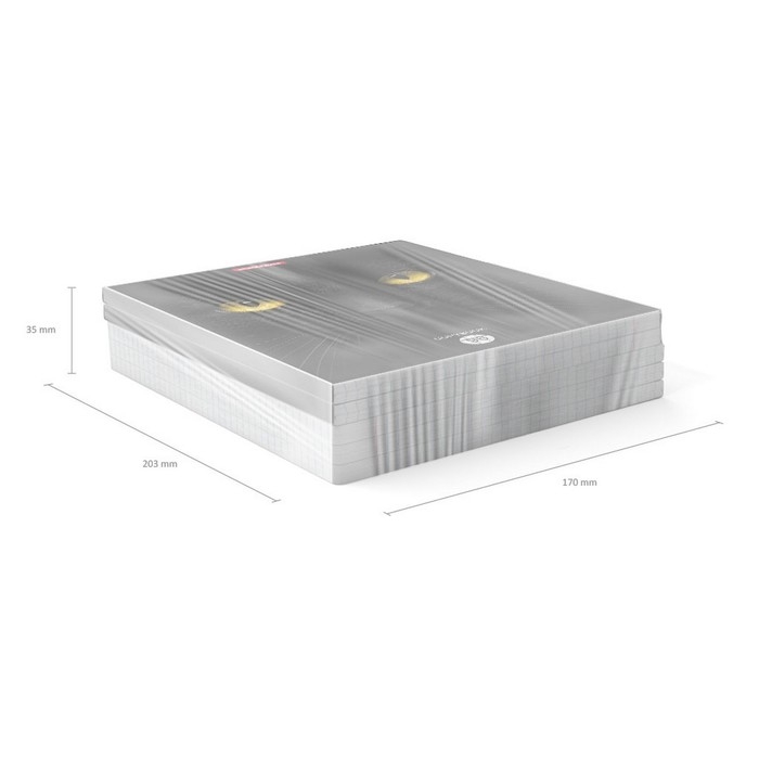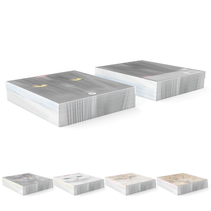 Тетрадь общая формата А5+ (170х203 мм). Обложка из высококачественного мелованного картона плотностью 190 г/м2. Отделка - матовая ламинация. В блоке 96 листов в клетку с полями. Бумага офсетная плотностью 60 г/м2. Цвет линовки - синий. Скругленные уголки обложки и блока. Тип скрепления - скоба. Тетради одного дизайна упакованы в термоусадочную пленку по 5 штук. Товар поставляется в нескольких вариантах дизайна без возможности выбора.