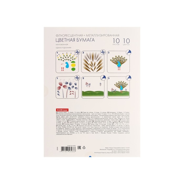 Бумага цветная металлизированная + неоновая А4, 10 цветов, 10 листов, ErichKrause, односторонняя, мелованная, в папке, плотность 80 г/м2, схема поделки