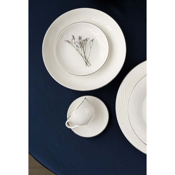 Посуда Magistro серии La Perle покорит лаконичным дизайном и молочной белизной натурального фарфора. Современная форма предметов подчеркнута элегантной серебряной окантовкой. Изделия из линейки La Perle можно использовать как в повседневной, так и в праздничной сервировке. Посуда станет чудесным подарком и дополнит коллекцию столового семейного фарфора.