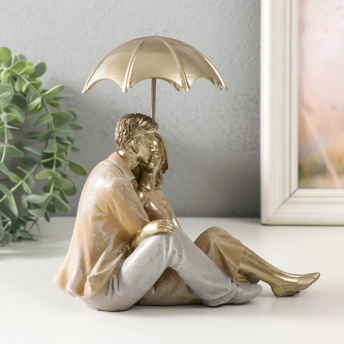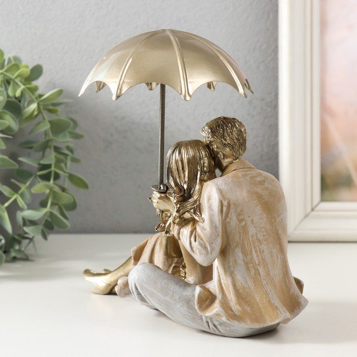 Сувенир полистоун "Влюблённая пара под зонтом - нежность" бежевый 18х18х10 см