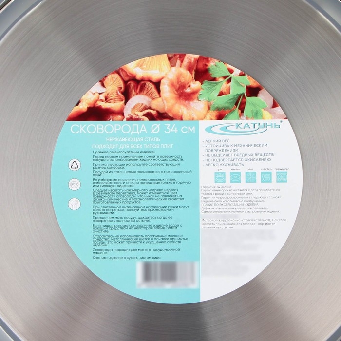 Сковорода из нержавеющей стали «Общепит», d=34 см, толщина корпуса 0,6 мм, дно 3,5 мм, капсульное дно, индукция
