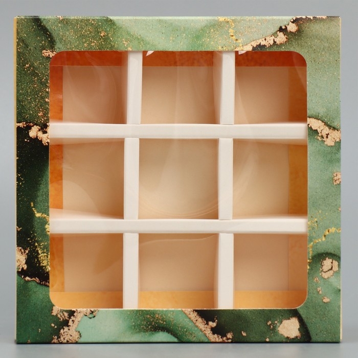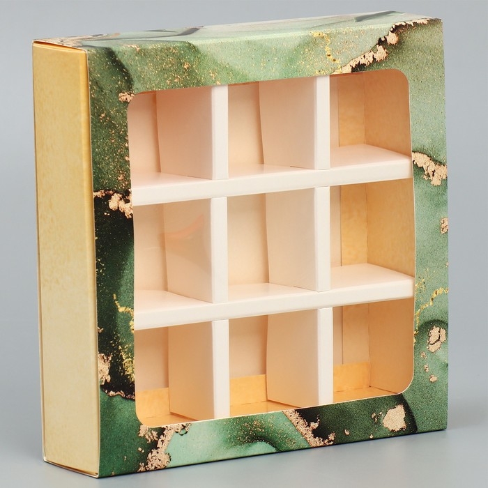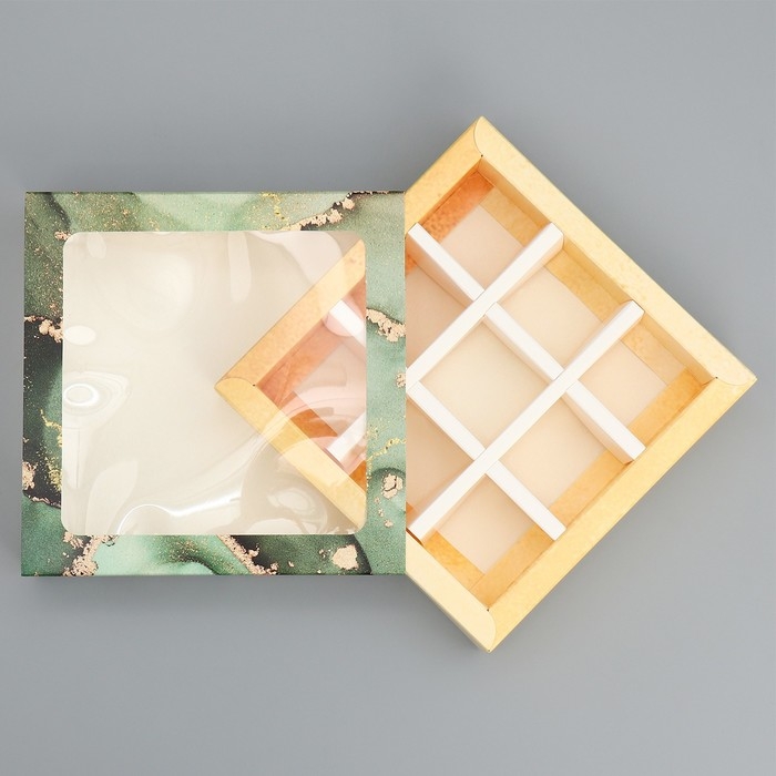 Коробка под 8 конфет и шоколад с ячейками, кондитерская упаковка, «Флюид» 18 х 18 х 4 см