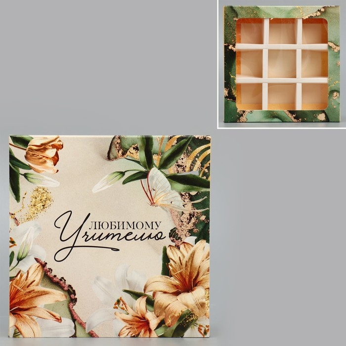 Коробка для конфет, кондитерская упаковка, 9 ячеек, «Любимому учителю» 14.5 х 14.5 х 3.5 см