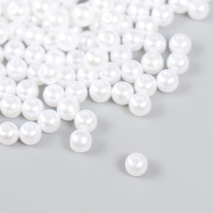 Набор бусин "Рукоделие" пластик, диаметр 6 мм, 25 гр, снежно-белый