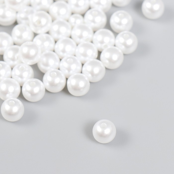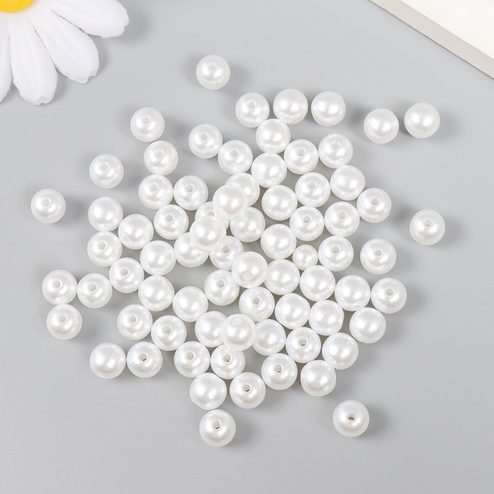 Набор бусин "Рукоделие" пластик, диаметр 8 мм, 25 гр, снежно-белый