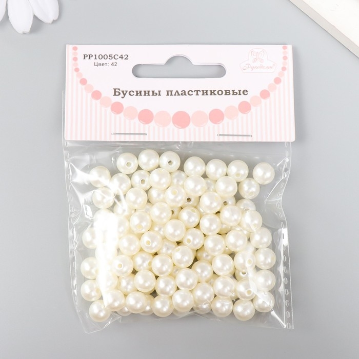 Набор бусин "Рукоделие" пластик, диаметр 8 мм, 25 гр, молочный