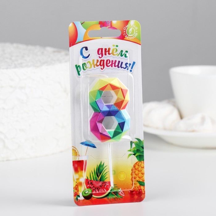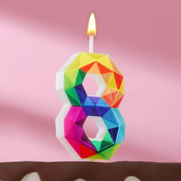 Свеча в торт на шпажке "Разноцветные грани", цифра 8, 5,3 см