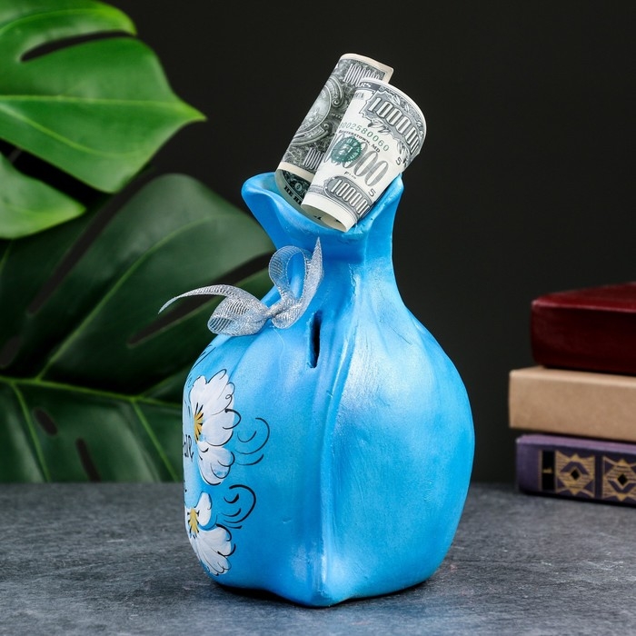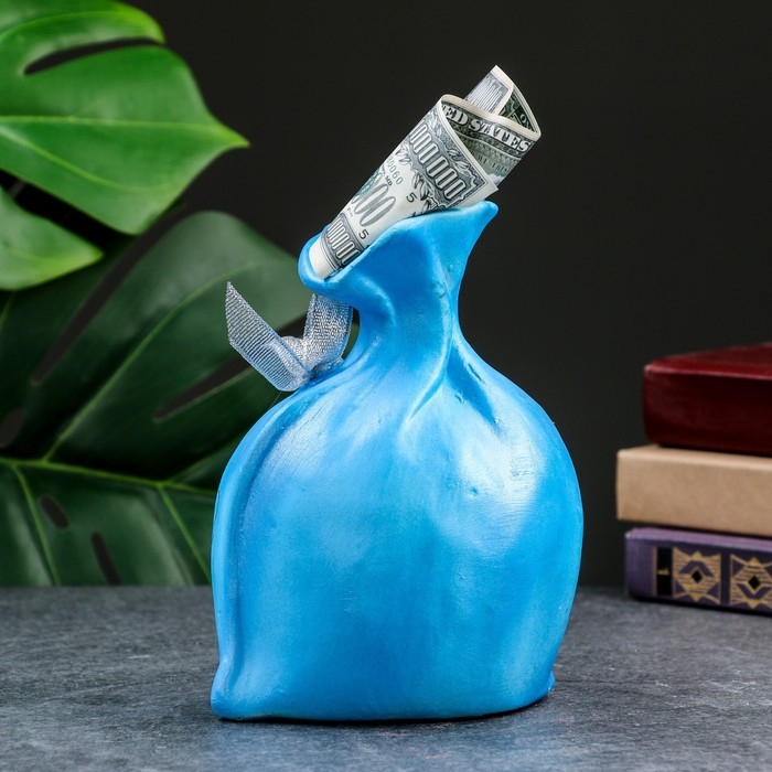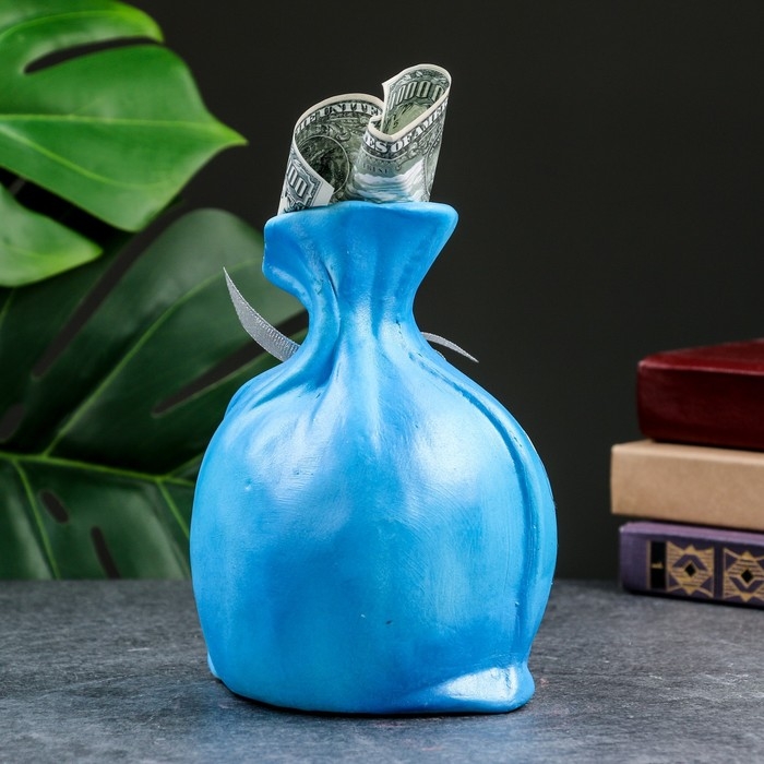 Копилка "Мешок - На добрые дела" голубая, 17см