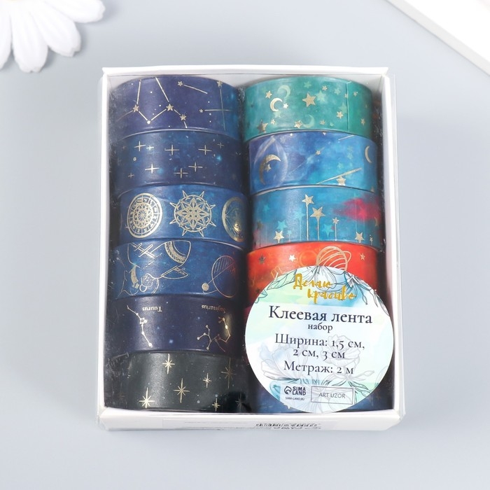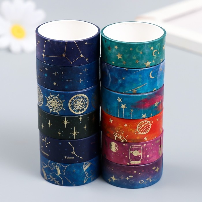 Клейкая лента бумага "Звёздное небо" набор 12 шт ширина 1,5 см намотка 2 м