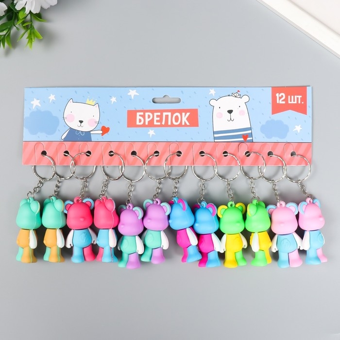 Брелок резина "Разноцветный мишка" МИКС 3х2х5,5 см