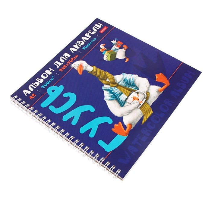 Альбом для акварели 205х205мм "ДоброГусь", 20 листов на гребне, 200г/м2, тиснение, жесткая подложка