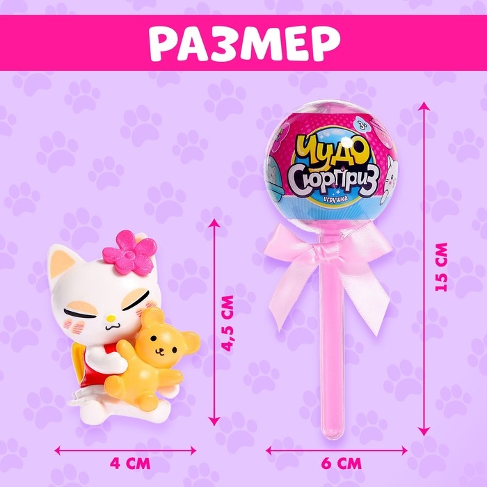 Ваша принцесса любит играть и получать сюрпризы? Тогда этот набор станет отличным подарком, ведь внутри она найдёт игрушку-кошечку и наклейки! Упаковка выполнена в виде леденца на палочке, поэтому набор можно вручить в подарок даже без дополнительной праздничной упаковки.