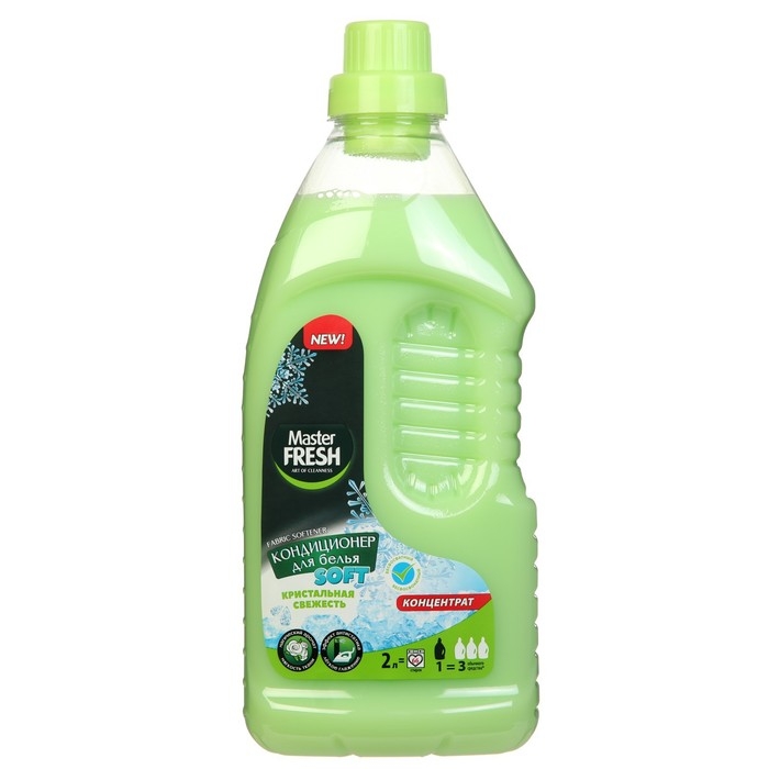 Кондиционер Master FRESH "Кристальная свежесть", концентрат заменяет 3 флакона обычного неконцентрированного средства. Обеспечивает деликатный уход за текстильными изделиями в последнем цикле стирки.