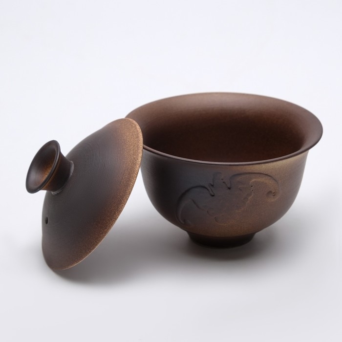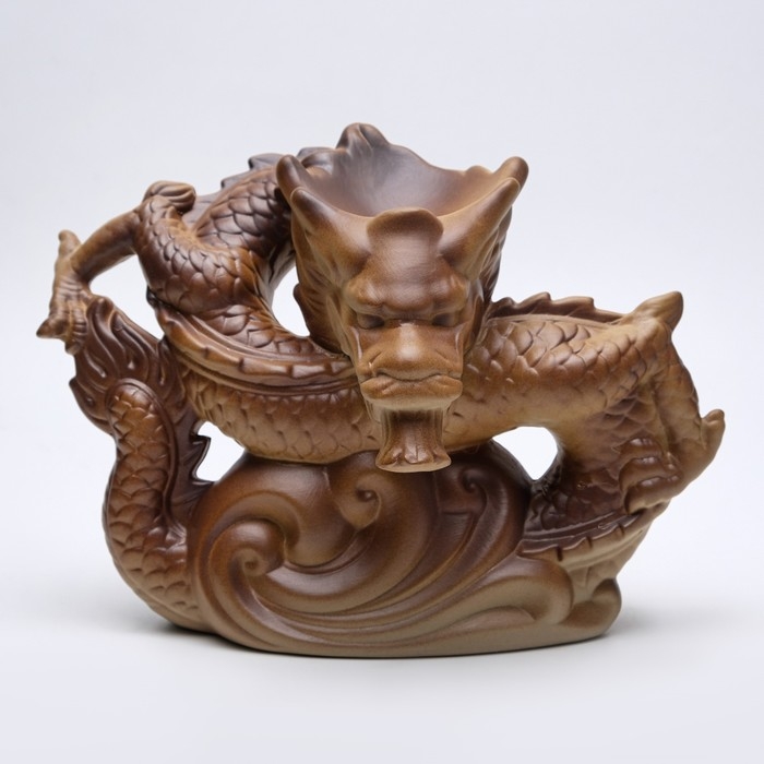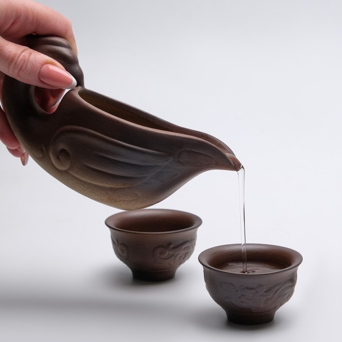 Набор для чайной церемонии керамический «Дракон», 5 предметов: 4 пиалы 25 мл, чайник 200 мл, цвет коричневый