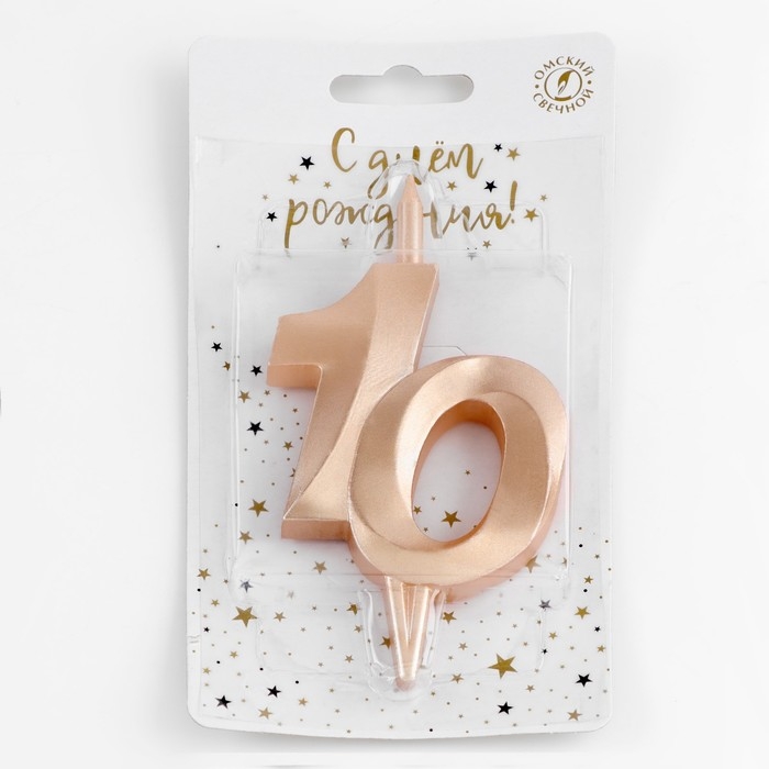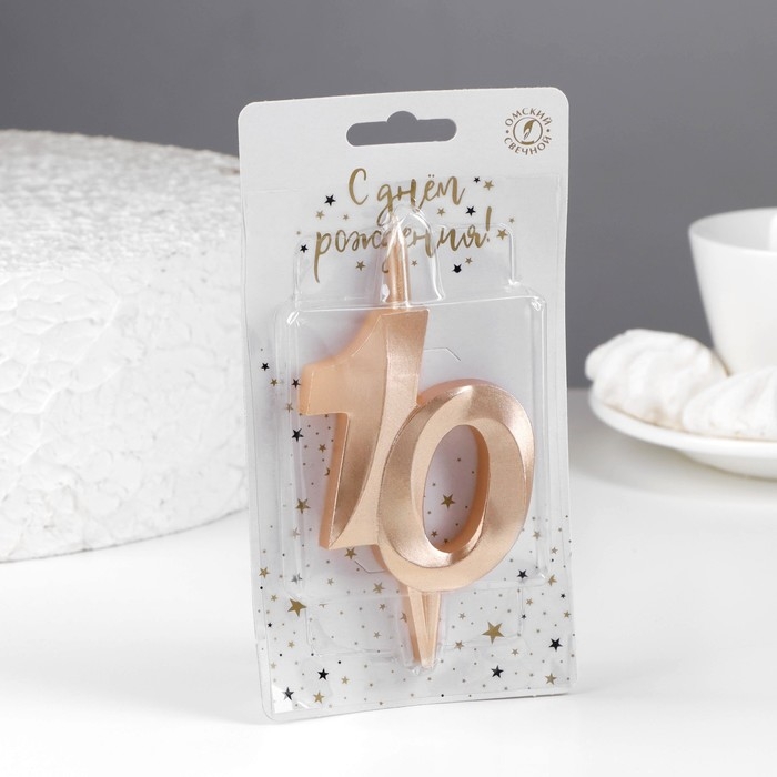 Свеча в торт "Юбилейная", цифра 10, 10 см, шампань