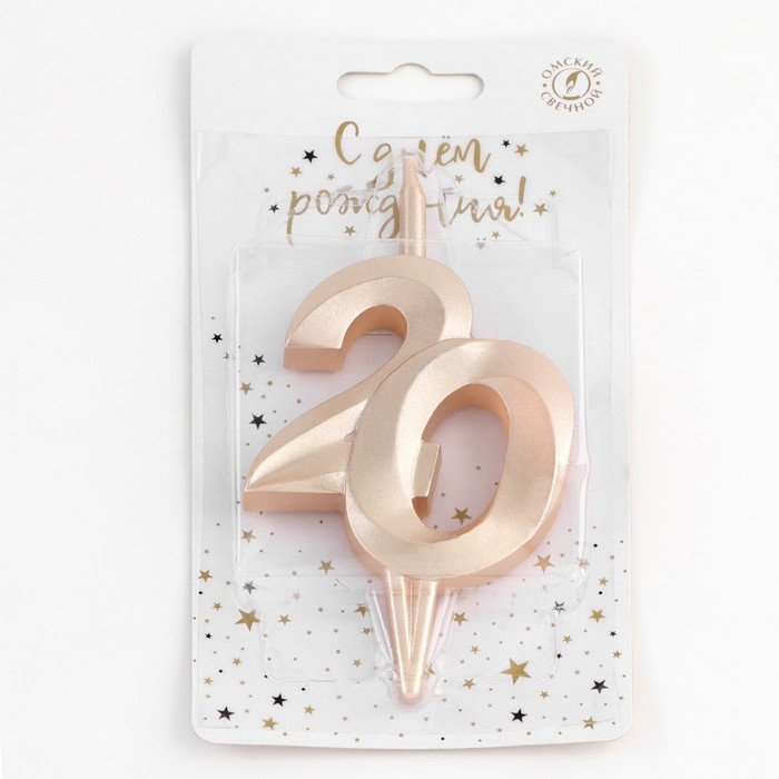 Свеча в торт "Юбилейная", цифра 20, 10 см, шампань