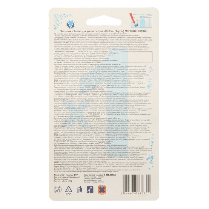 Чистящие таблетки для унитаза Chirton "Морской прибой" 50г*1шт