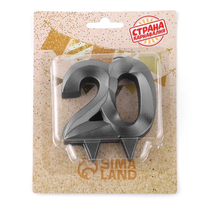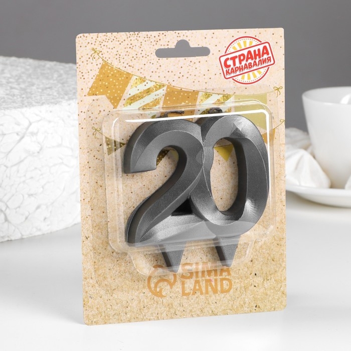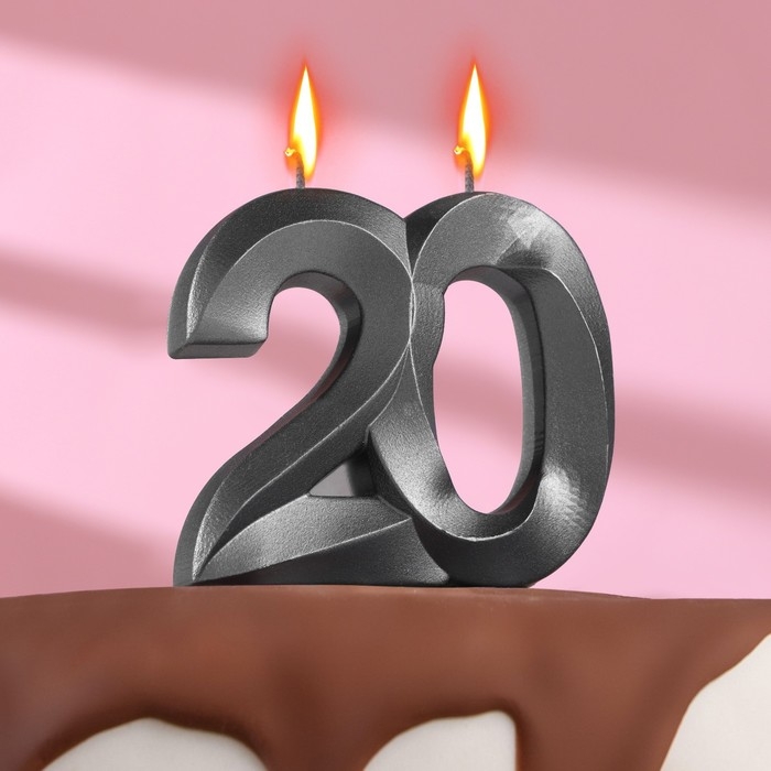 Свеча в торт юбилейная "Грань", ,цифра 20, , графит, 6,5 см