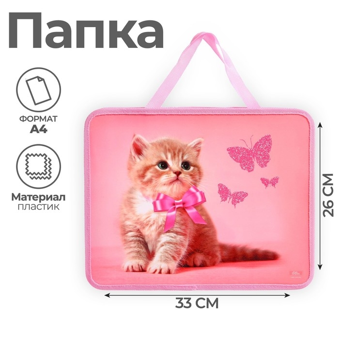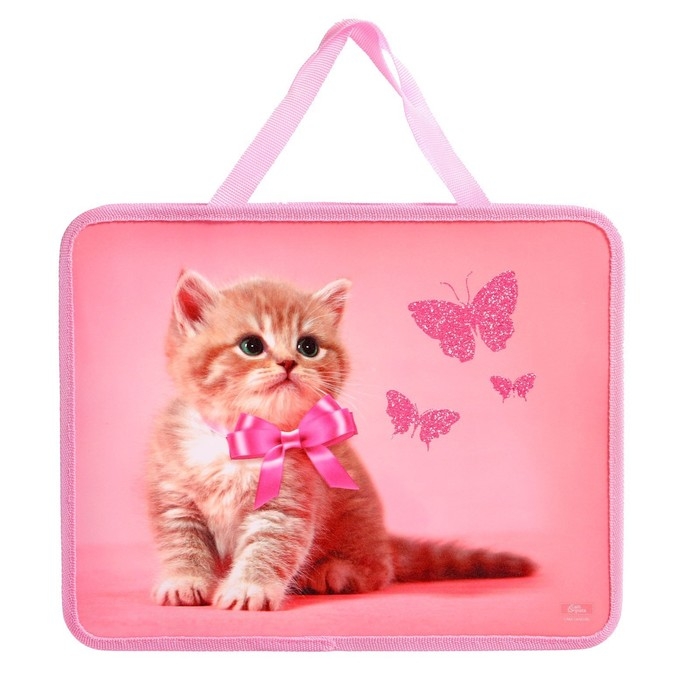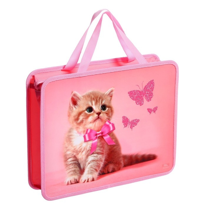Папка с ручками А4, 330 х 260 х 75 мм, пластиковая, ручки-тесьма, Calligrata "Котик"