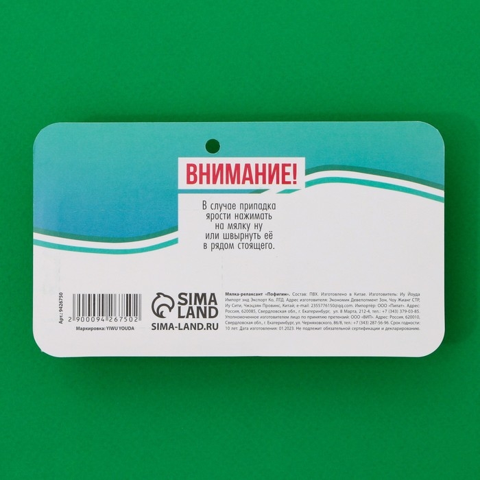 Мялка антистресс «Пофигин» , 3,7 х 5 см
