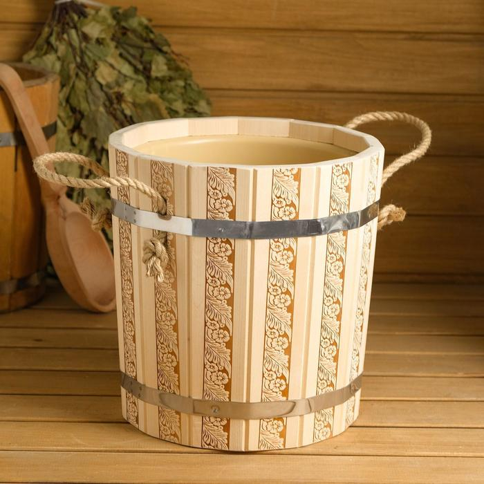 Запарник-ведро из липы, 10 л, с пластиковой вставкой, "Русские узоры"