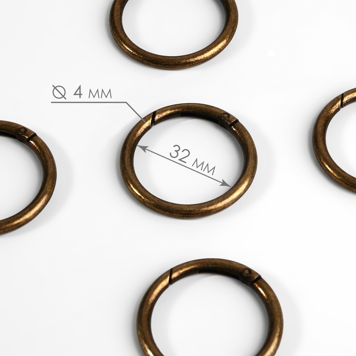 Кольцо-карабин, d = 32/40 мм, толщина - 4 мм, 5 шт, цвет бронзовый