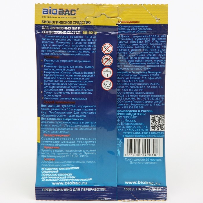 Сокращает объемы твердых фракций Предотвращает появление жировой и мыльной пленки на стенках и дне выгребных ям и септических систем Восстанавливает эффективное