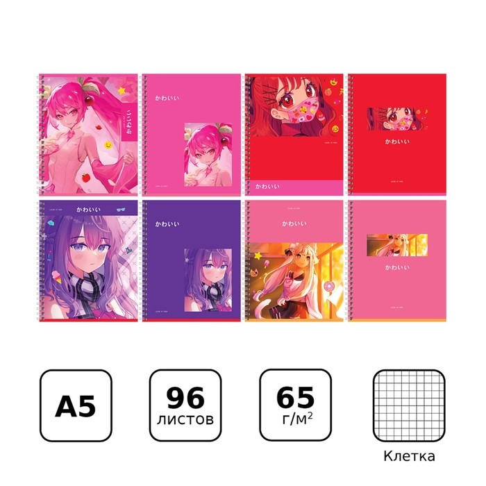 Тетрадь двойная 96 листов в клетку на гребне BG "Аниме. Лучшая подруга", обложка мелованный картон, ВД-лак, МИКС