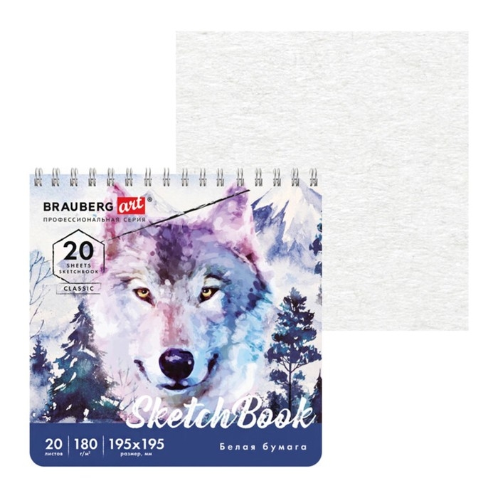 Альбом для набросков квадрат, 195 х 195 мм, 20 листов, BRAUBERG ART CLASSIC, на гребне, 180 г/м2, 112994