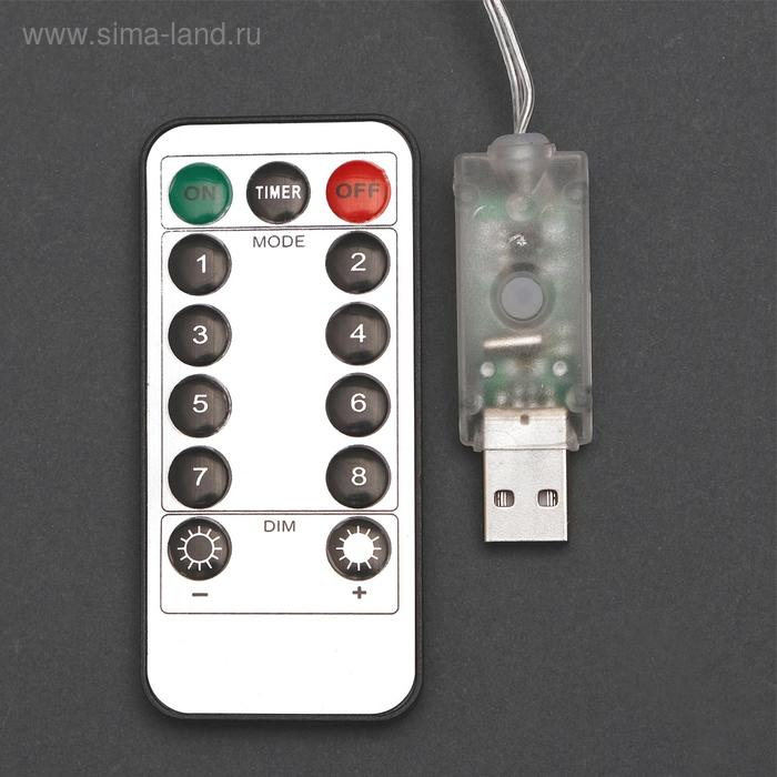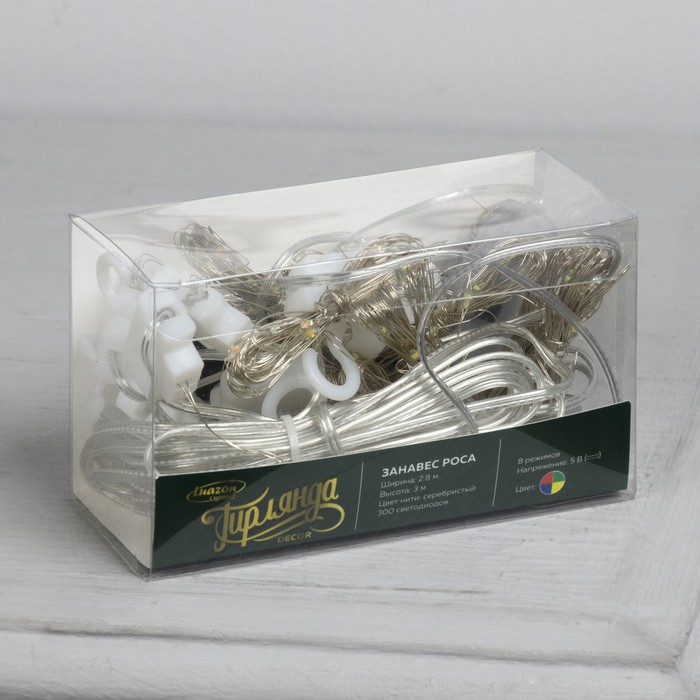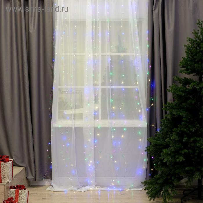 Гирлянда «Занавес» 2.8 × 3 м роса на крючках, с пультом, IP20, серебристая нить, 300 LED, свечение мульти, 8 режимов, USB