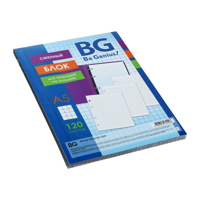 Сменный блок для тетрадей на кольцах А5, 120 листов в клетку, белый, 60 г/м2