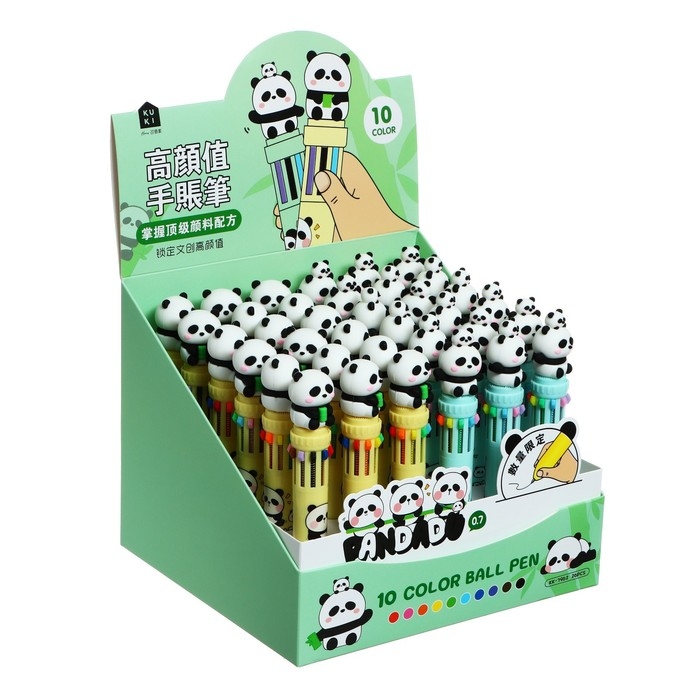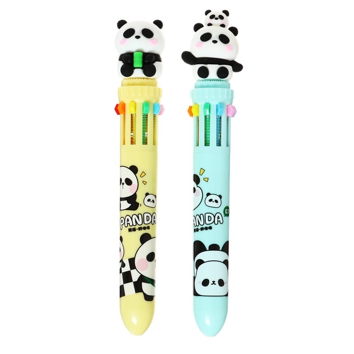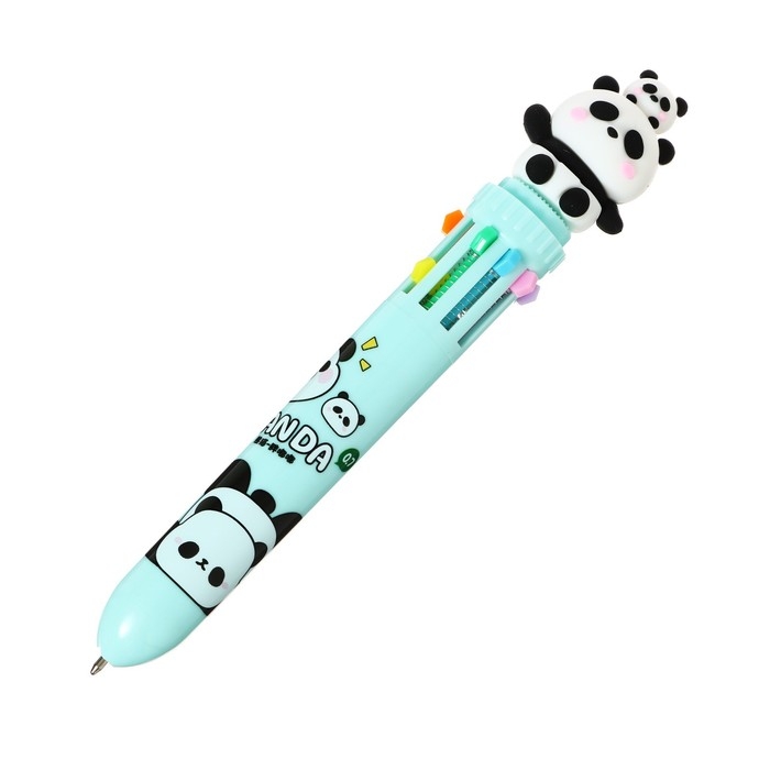 Ручка шариковая автоматическая 10-ти цветная, стержень 0,7 мм, "Панда", МИКС