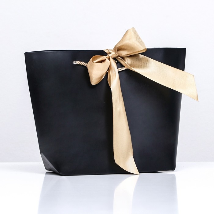 Пакет подарочный с лентой 19 х 20 х 9 см "Черный"