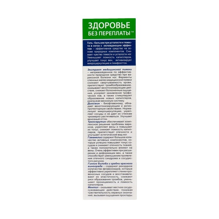 Гель бальзам для ног BIO экстракт пиявки и троксерутин, 50 мл