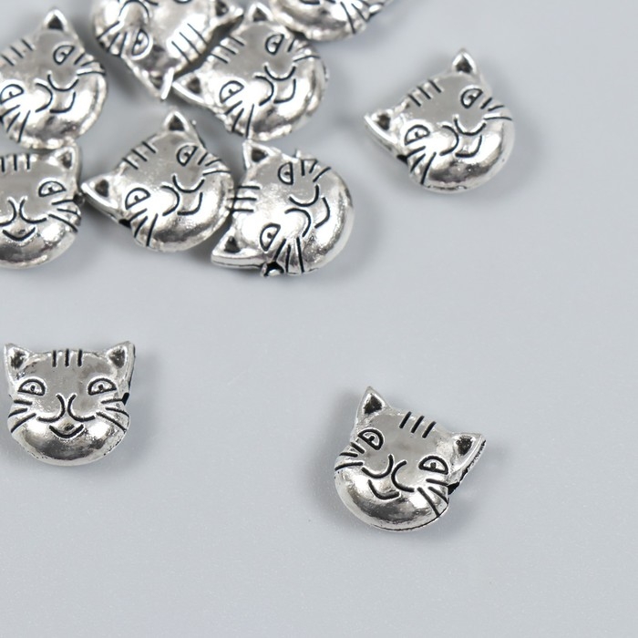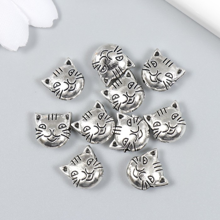 Бусина для творчества металл "Котик" набор 10 шт серебро 1,1х1,1 см