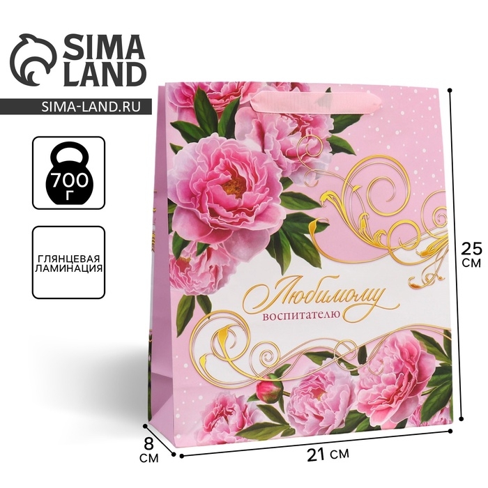 Пакет подарочный ламинированный, упаковка, «Воспитателю», ML 21 х 25 х 8 см