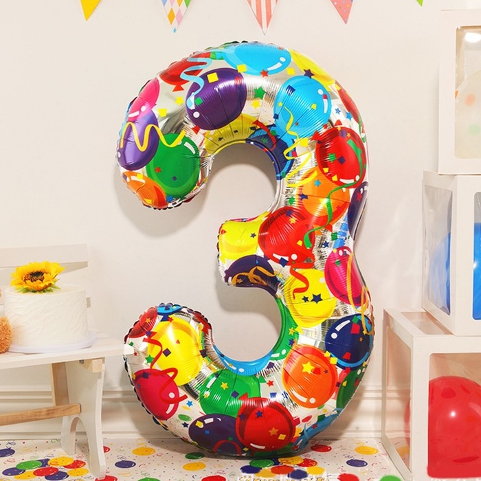 Шар фольгированный 40" «Цифра 3», яркие шары