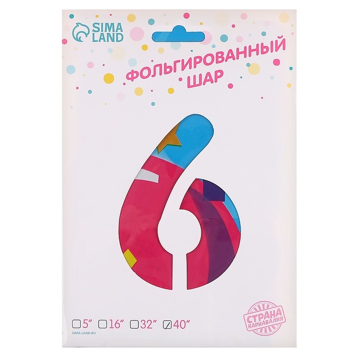 Шар фольгированный 40" «Цифра 6», яркие шары