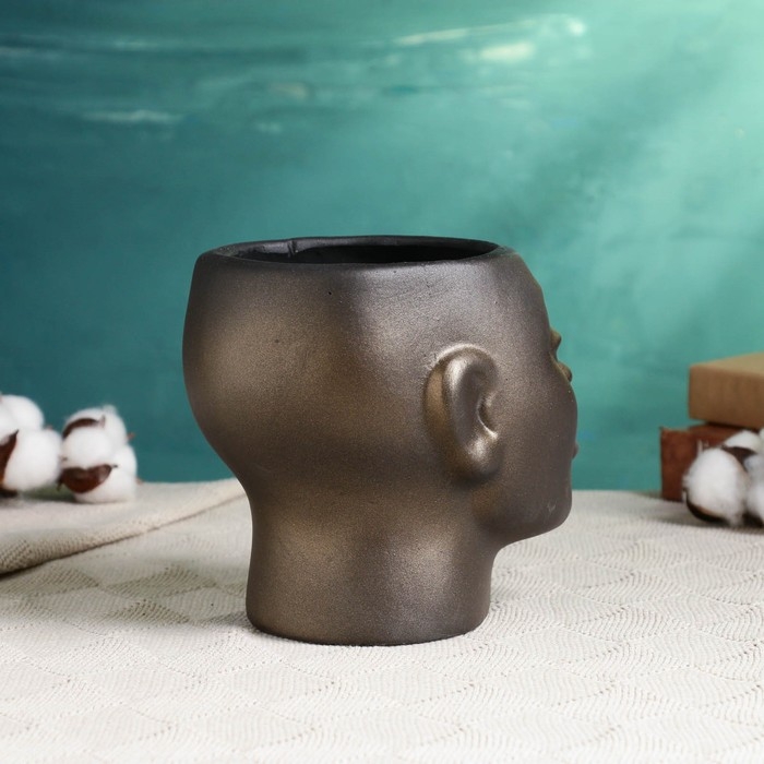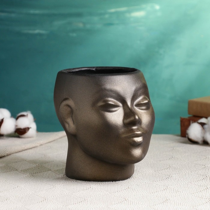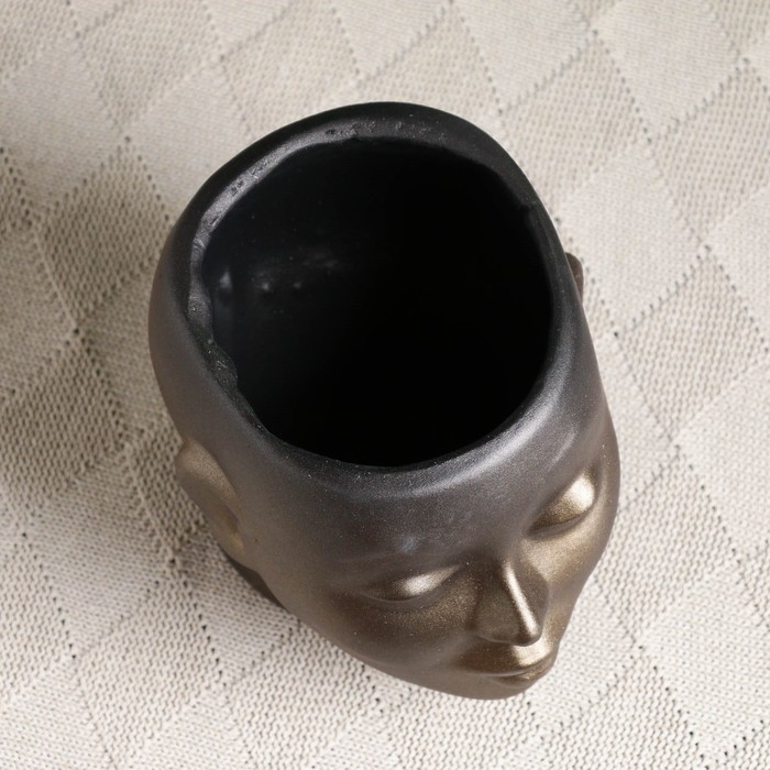 Фигурное кашпо "Голова девушки" черно-золотое, 16х14х16см