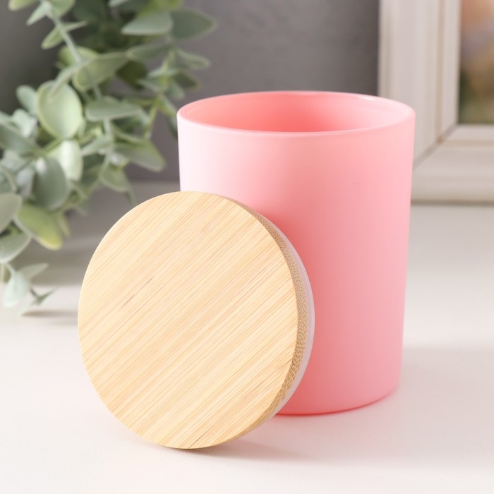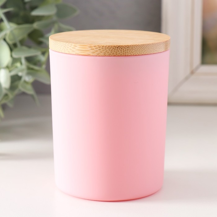 Банка для свечей стекло с крышкой "Розовая матовая" 220 мл 7х7х8,4 см