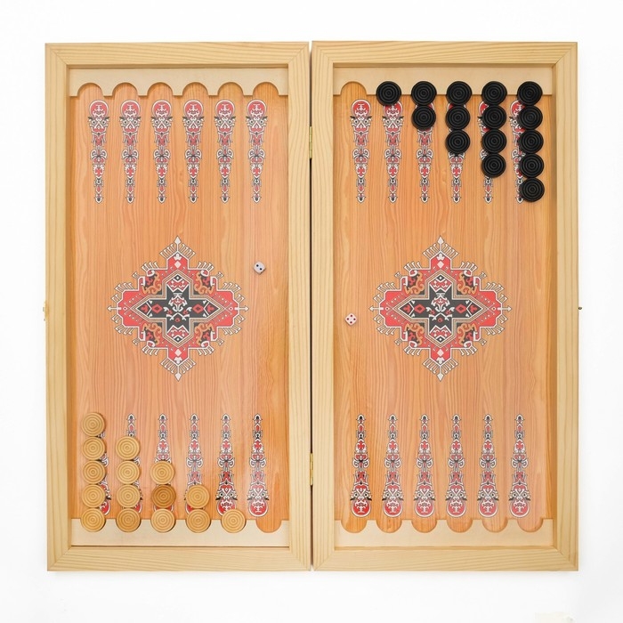Нарды деревянные большие, настольная игра "Узор", 40 х 40 см, с полем для игры в шашки