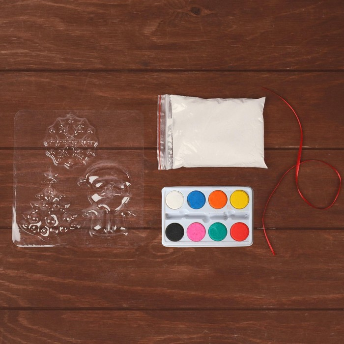 Набор для творчества «Новогодние игрушки из гипса» (ёлочка+дед мороз+снежинка)